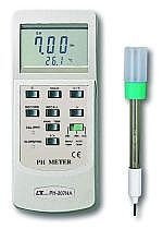 * pH, mV, Temp., manual Temp. Adj. or ATC.