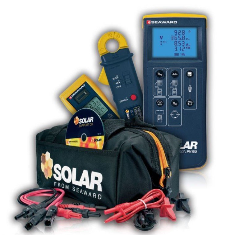 | Product Includes | Seaward Solar PV150 plus, Seaward Solar Survey 200R, current clamp, leads and adapters, carrying bag, support CD and cal certs |