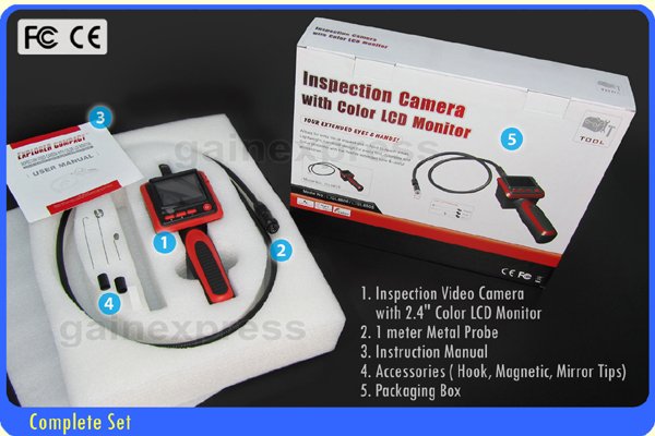 CIA390-1M Video Inspection Camera Borescope 2.4" LCD Endoscope 4 LED Lights Basic Set